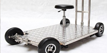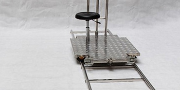Doorway dolly with track wheels. Camera operator seat and pushbar.